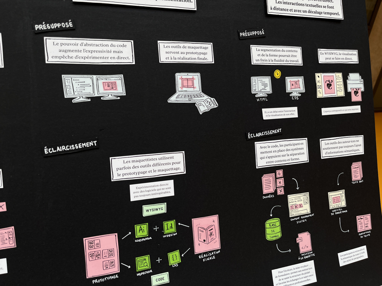 The thesis is conducted by a student with a background in graphic design. It falls within the fields of both Design and Human-Computer Interaction. Some of its goals are to address questions of interoperability of collaborative tools as well as support for long-term collaboration in emerging editorial practices. The theoretical framework consists of ecologies of artifacts, distributed cognition and the concept of boundary objects applied through the Generative Theories of Interaction developed within the Ex-Situ team.